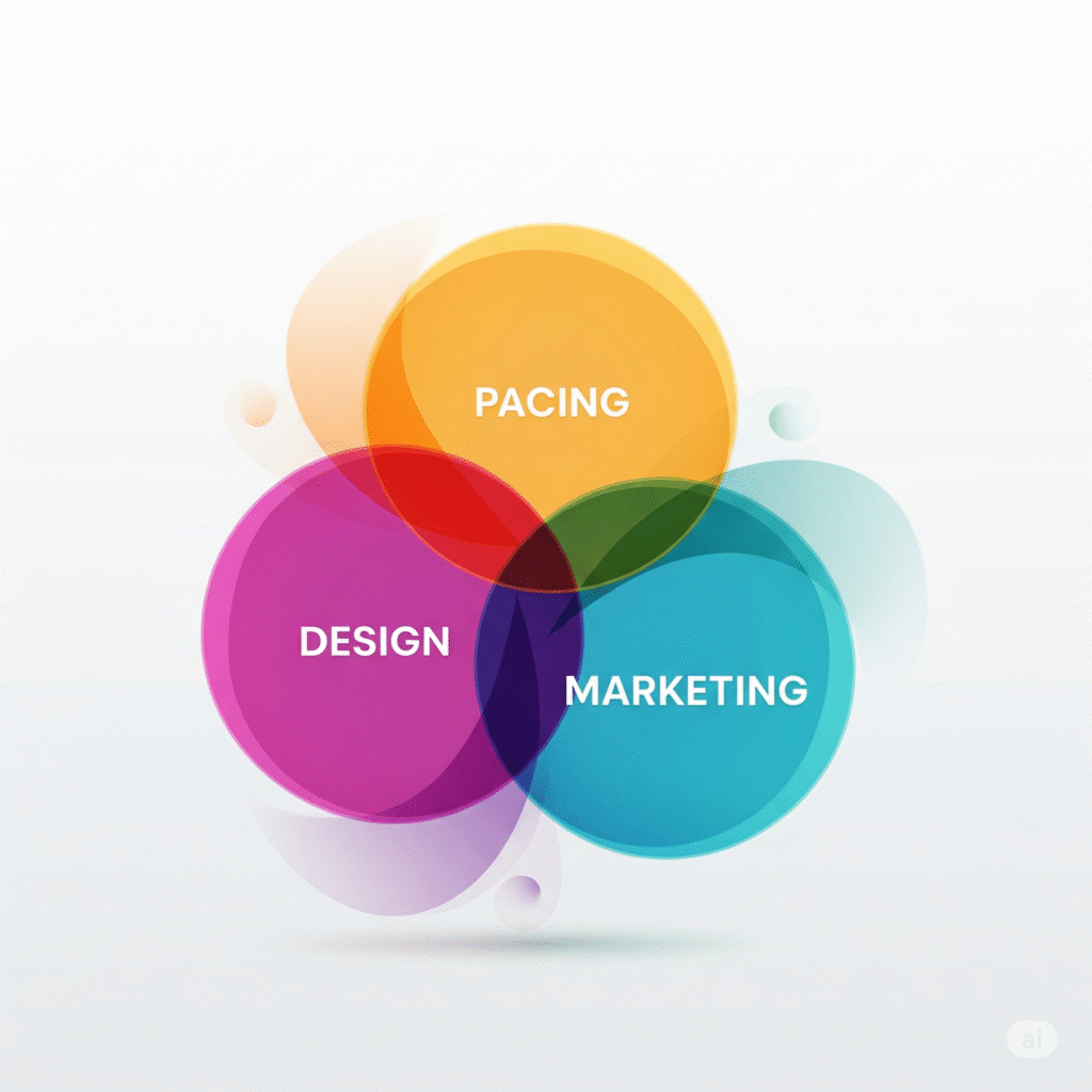 この3つの言葉が融合することで、「お客様のペースに合わせて、売れる仕組みをデザインし、ウェブマーケティングで成長を加速させる」という、PACING DESIGN MARKETINGの核となる価値を表現しています。